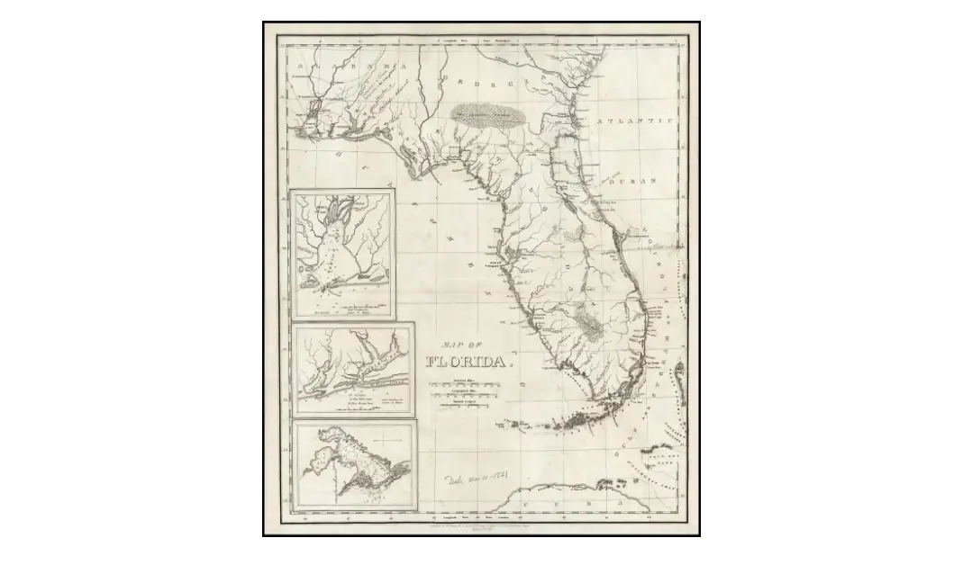William Darby, whose experiences on Andrew Jackson's topographical staff and as deputy surveyor of the United States earned him a reputation as the leading American cartographer of his day, capitalized on the opportunity, publishing a laudatory description of Florida in 1821.