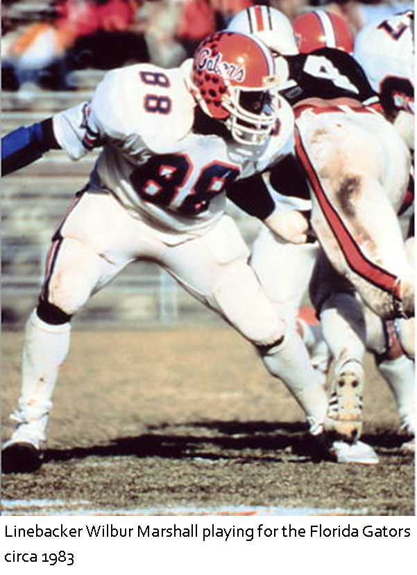 1962 – Two-time Super Bowl champion linebacker Wilber Marshall was born in Titusville on this date. Marshall attended the University of Florida where he was named all-American in 1982 and 1983 and was a 3-time first-team SEC selection. In the 1984 NFL draft Marshall was the 11th pick in the first round with the Chicago Bears. Marshall helped lead the Bears to a 46-10 Super Bowl victory over the New England Patriots in 1986 and 37-24 Super Bowl win over the Buffalo Bills in 1992. He finished his 12 year NFL career with the New York Jets in 1995 after playing 176 games and boasting 1,043 tackles.