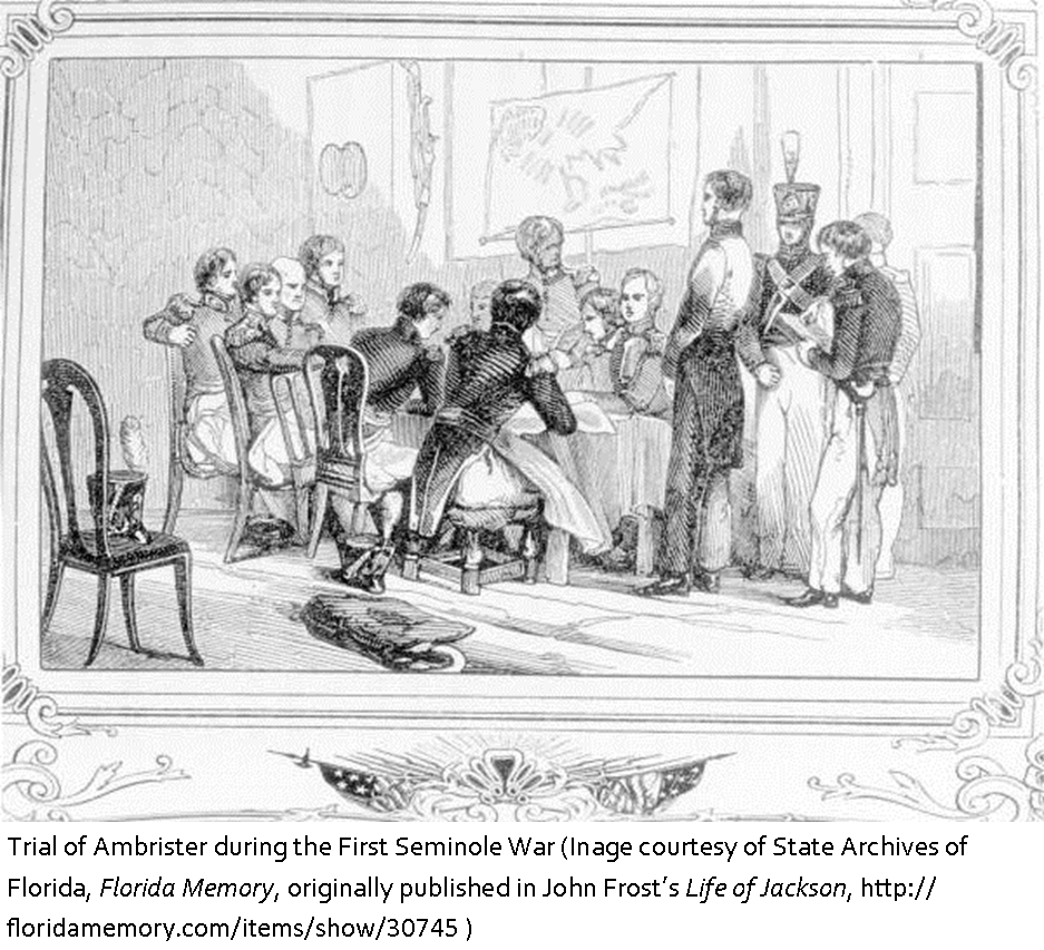 1818 – Robert Ambrister and Alexander Arbuthnot were hanged by American soldiers led by then General Andrew Jackson at St. Marks on this date. The two British citizens were tried and sentenced in a military court for espionage and aiding the enemy during the First Seminole War. Jackson’s intention was to blame the Seminole War on outside foreign agitators such as Ambrister and Arbuthnot in order to justify U.S. military intervention into Spanish Florida. The incident gained international attention and Jackson’s actions in Florida were under close scrutiny. The United States Congress even condemned the incident, which plagued Jackson throughout his political career.