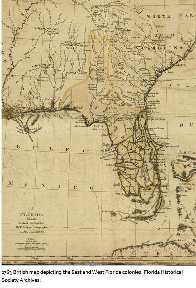 1763 - Spain transfers title of Florida to Britain in exchange for the return of the City of Havana, Cuba, which had been captured when Spain allied itself with France in the French and Indian War. Britain controlled Florida from 1763 until 1783, when it again became a Spanish possession at the end of the American Revolution. During this "British Period" when the Union Jack flew over Florida, the British divided Florida into two territories: East Florida and West Florida.