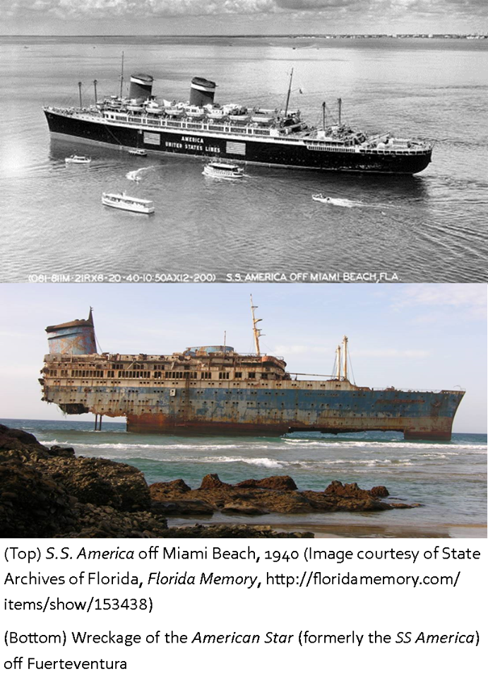 1940 - The SS America stopped at Miami on her maiden voyage as the flagship of the United States Line on this date. The SS America would be commissioned as a troop transport ship shortly after this voyage on May 28, 1941. The newly named USS West Point would go on to transport over 350,000 troops and personnel in both the Atlantic and Pacific theaters, more than any other U.S. Navy troop transport ship during WWII. After the war the SS America would once again carry civilian passengers until it wrecked in the Canary Islands in 1993.