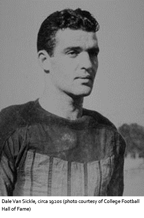 Dale Van Sickle, right end for the Florida Gators was voted to the First Team College Football All American squad, the first UF player to receive the honor. Van Sickle was born in Eatonton Georgia but grew up in Gainesville and began his academic career at UF in 1927. Along with football, Van Sickle played both varsity baseball and basketball, although he is most famous for his post-collegiate Hollywood acting and stuntman career, which spanned over 30 years.
