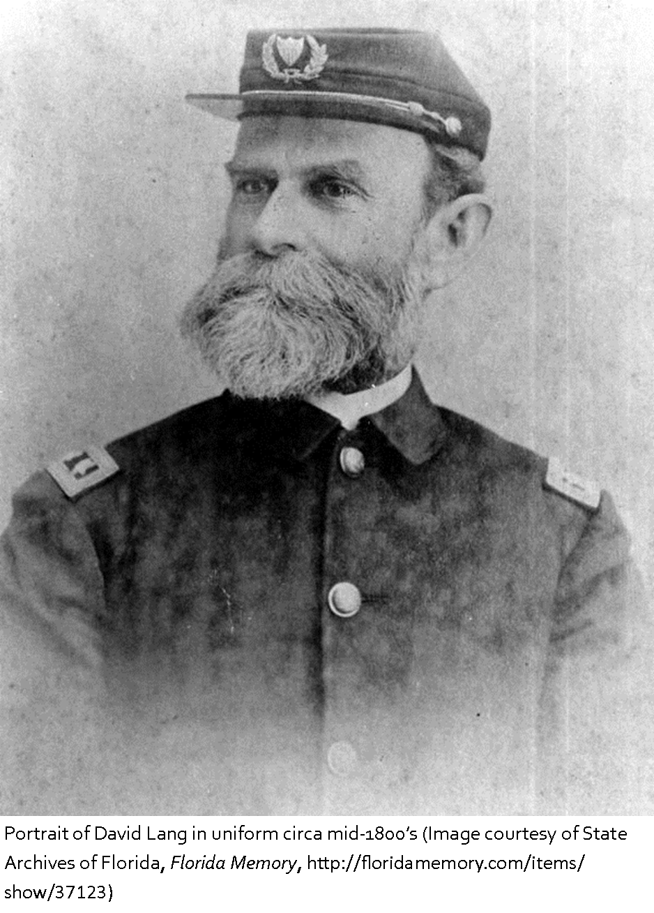 Col. David Lang, Confederate veteran from Florida, died in Tallahassee on this date. Lang was born in Camden County Georgia in 1838 and attended the Georgia Military Academy, graduating in 1857. Lang joined the 1st Florida Infantry in early 1861 and later served with 8th Florida Infantry during the Civil War. He was involved in some of the major battles of the war including Antietam, Gettysburg, the Battle of Cold Harbor and was leading the Florida brigade when they surrendered at Appomattox Courthouse on April 9, 1865. Lang then came back to Florida and worked as a civil engineer. He was elected to the state legislature and served as Florida’s Adjunct General overseeing the reorganization of Florida militia troops in the late 19th century. He is buried in the Old City Cemetery in Tallahassee.