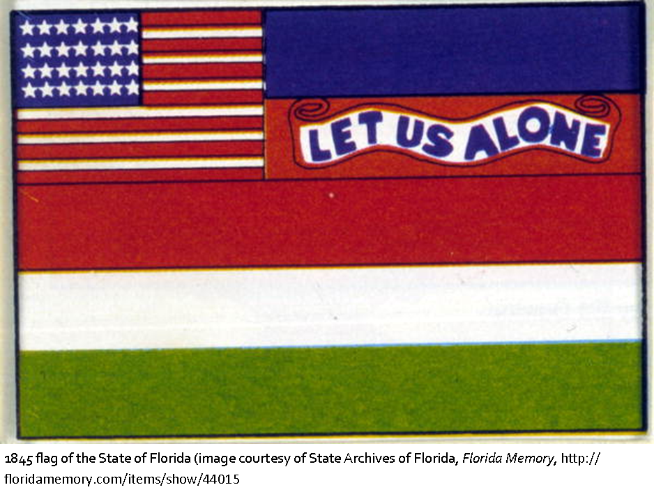 The Florida Senate officially “consented to and adopted” the first flag of the new State of Florida on this date. It was unfurled at Governor Moseley’s inauguration on June 25th of that year, even though the Senate objected to the motto, “Let Us Alone.” It was because of this disagreement and the fact that the State House of Representatives and State Senate acted through different resolutions at different times that the flag was never officially adopted. During the Civil War, a number of unofficial flags flew throughout the state and it was not until 1868, when Florida was readmitted into the Union, that a new official flag and seal were approved. The current design was adopted in 1900.