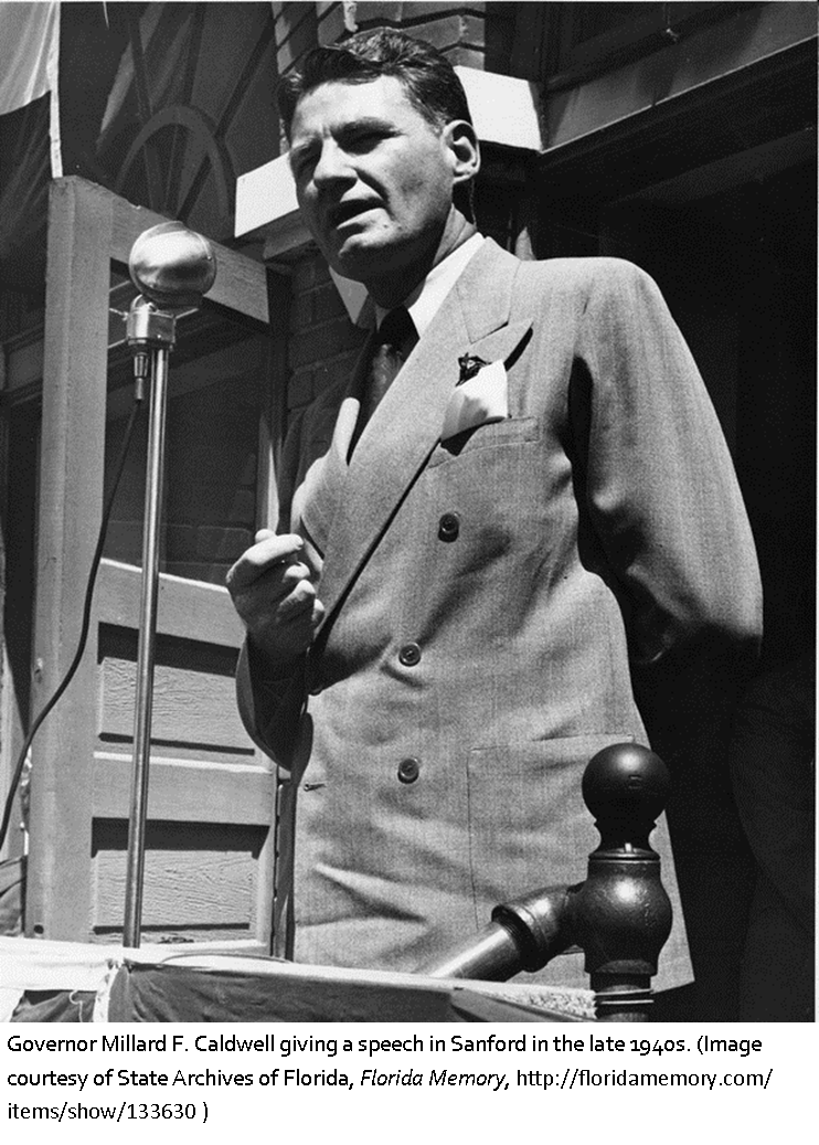 1897 -Millard Fillmore Caldwell, the 29th governor of Florida (1945-1949), was born today near Knoxville, Tennessee. He attended Carson-Newman College, the University of Mississippi, and the University of Virginia and served in the Army during WWI, before coming to Florida in 1924. In 1929, he was elected to represent Santa Rosa County in the Florida House of Representatives. In 1933, he was elected to theÿU.S. House of representatives from Florida?s 3rd District. In 1941, he retired to private law practice, but reentered public life in 1944 when he ran for governor. In 1962, Caldwell was appointed a Justice of the Supreme Court of Florida. He was elected for a full term that same year. In 1967, he was elected Chief Justice. Caldwell retired in 1969 and died in Tallahassee on October 23, 1984.