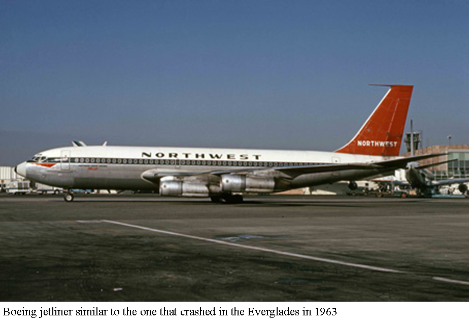 Northwest Orient Airlines Flight 705 crashed into a remote area of the Everglades