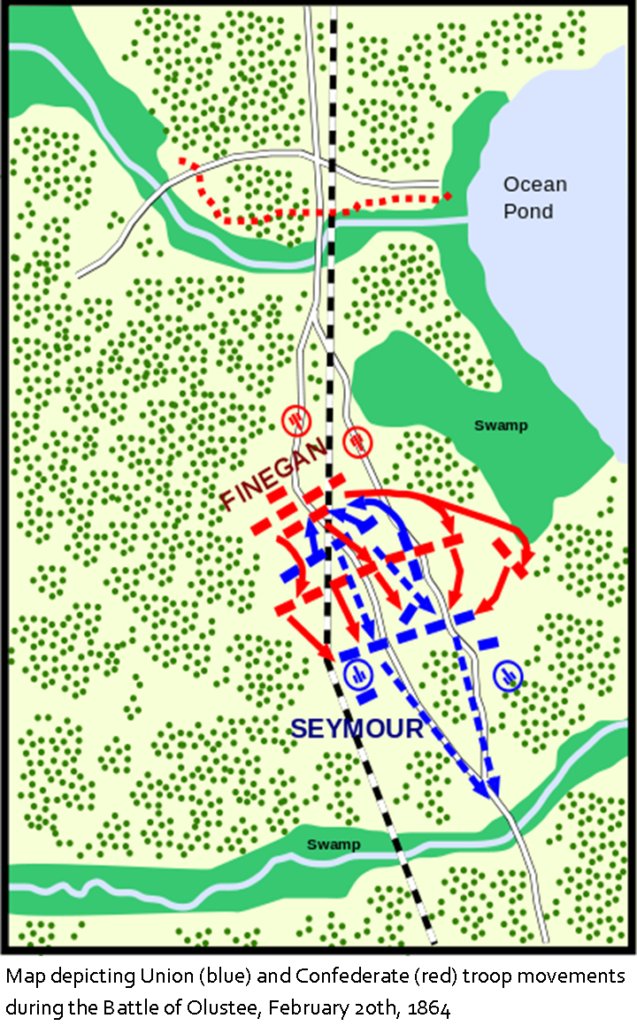 1864 – The Battle of Olustee took place on this date. Also known as the Battle of Ocean Pond, it was the largest Civil War battle fought in Florida. Union General Truman Seymour and 5,500 troops met Confederate Brigadier General Joseph Finnegan with a force of around 5,000 troops clashed near present day Lake City. Union forces were driven back to Jacksonville after intense fighting, although casualties remained high on both sides. The site of the original battle is now an historic state park and a reenactment of the battle takes place every year within the park grounds.