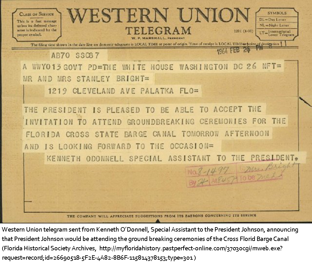 President Lyndon B. Johnson at opening ceremonies of the Cross Florida Barge Canal