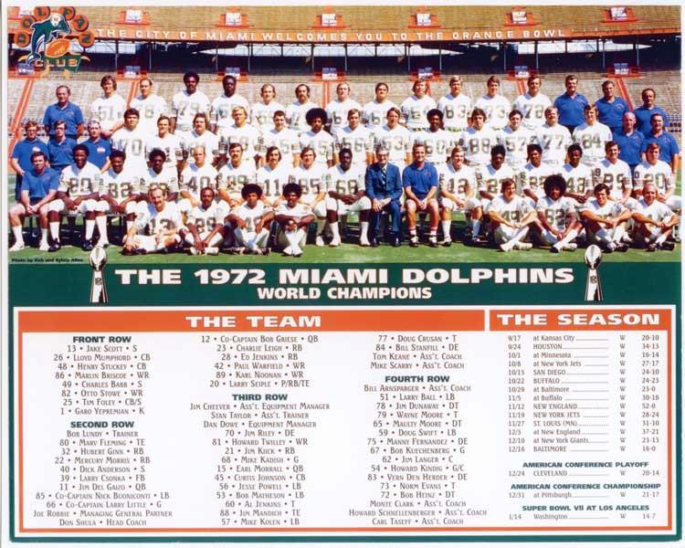 1973 – The Miami Dolphins beat the Washington Redskins 14-7 to win Super Bowl VII at the Los Angeles Memorial Coliseum in California. The Dolphins were the first and only team in NFL history to complete a perfect undefeated season. The Dolphins dominated play for most of the game and would have shut out the Redskins had it not been for a famous blocked field goal attempt in the final few minutes of the game which resulted in the only Redskins touchdown. This was the first Super Bowl win for coach Don Shula who coached the Dolphins to another Super Bowl win the following season.