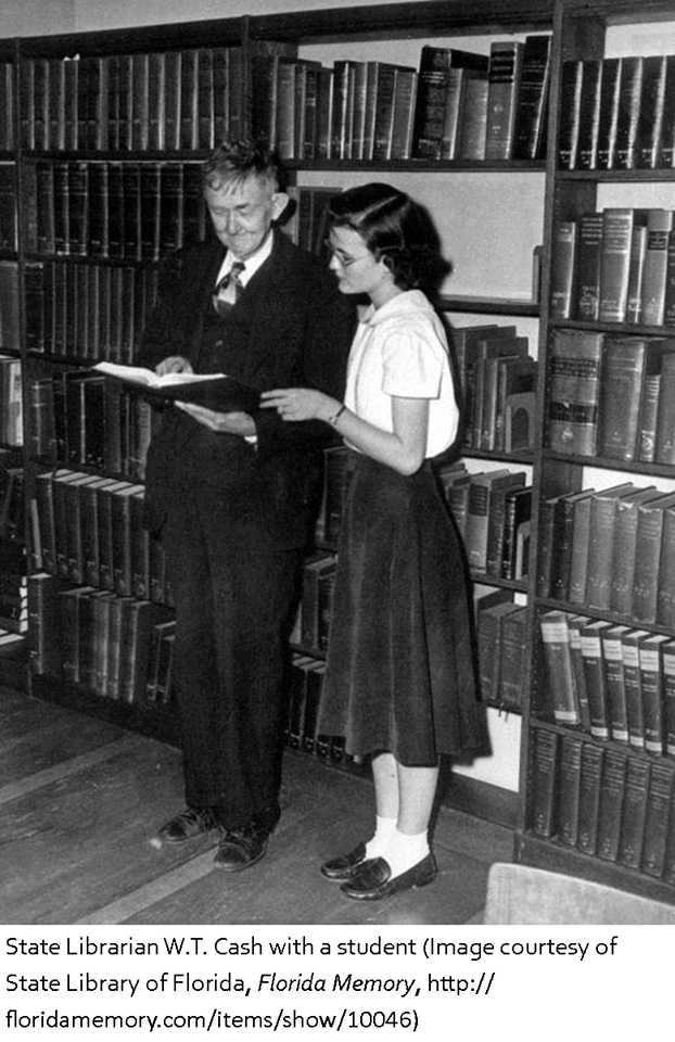 1951 - William Thomas Cash, the first state librarian for Florida, died on this date. A teacher and school superintendent in Taylor County, Cash was also a member of the Florida House of Representatives (1909, 1915, 1917) and a member of the State Senate (1919). From 1925 until 1928, he was the editor of the Perry Herald, and in April 1927, Cash was appointed state librarian, a post he held until his death. During his administration, he built the library up from a small collection of 1,500 uncatalogued volumes to over 50,000 volumes. Cash was the author of two books, The History of the Democratic Party in Florida (1936) and the four-volume The Story of Florida (1938).
