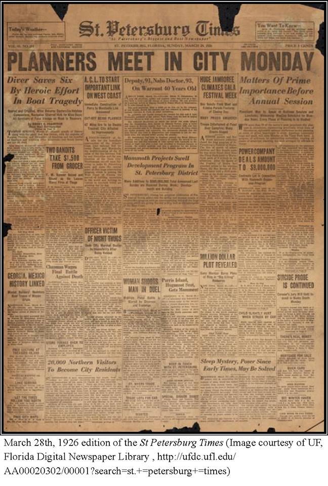 1884 – The first edition of the West Hillsborough Times, the predecessor to the Tampa Bay Times, was printed on this date. Produced by a local doctor, pharmacist and a printer, this early press had a circulation of only 480. The paper changed hands a number of times over the next few decades and its headquarters moved from Dunedin to St. Petersburg. By 1898 the name was officially changed to the St. Petersburg Times. The paper grew during the 20th century and in 2012 it was renamed The Tampa Bay Times which has a daily readership of over 500,000.