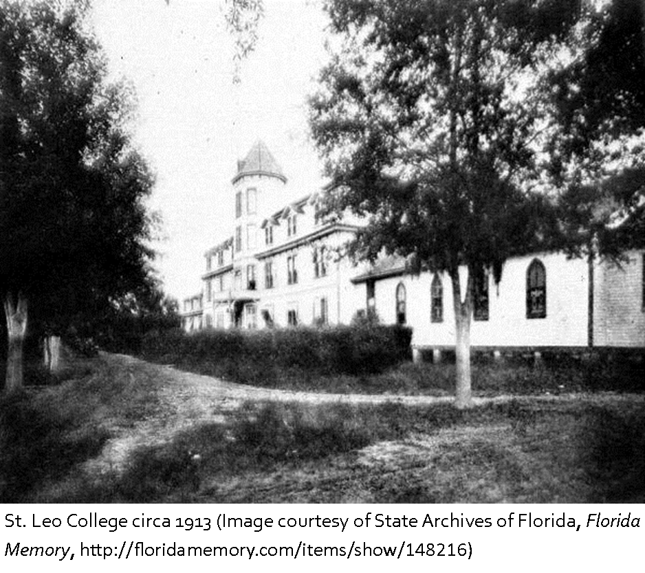1889 – St Leo University was chartered in Pasco County on this date. St. Leo was the first Catholic college in Florida named after Pope Leo the Great. The college was temporarily phased out to become a prep-school but was reopened in 1959. The school steadily grew in the following decades and in 1999 St .Leo established one of the first online degree programs in the country, building on a long tradition of providing distance degree programs for U.S. military personnel. Today St. Leo is still one of the largest providers of higher education to military-related personnel in the U.S.