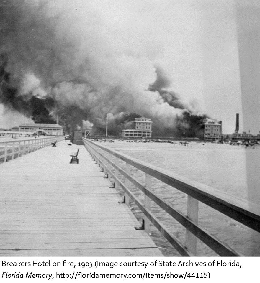 1903 – The Breakers Hotel burned down on this date. In 1896, Henry Flagler built his a second hotel, The Palm Beach Inn on the beachfront of the Royal Poinciana. Soon guests requested rooms "over by the breakers." When Flagler redoubled the hotel's size, he renamed it The Breakers. The fire occurred during an expansion project, the fourth in less than a decade. Less than a year later on February 1, 1904, it reopened to universal acclaim. Rooms started at four dollars a night, including three meals a day. The guest register read like a "who's who" of early twentieth century America - Rockefellers, Vanderbilts, Astors, Andrew Carnegie and J.P. Morgan vacationed alongside United States presidents and European nobility. On March 18, 1925, twelve years after Flagler's death, tragedy struck The Breakers. Fire destroyed the all-wood building. Flagler's heirs were determined to build the world's finest resort as a testament to his vision - and to reopen in time for the 1926-27 winter season. The New York City-based Turner Construction Company began work in January 1926, modeling the new building after the Villa Medici in Rome. Seventy-five artisans were brought from Italy to complete the magnificent paintings on the ceilings of the 200-foot long main lobby and first-floor public rooms. Far grander than its predecessor, The Breakers remains an unrivaled masterpiece. (info from the Breakers website, http://www.thebreakers.com/about_the_breakers/history/)