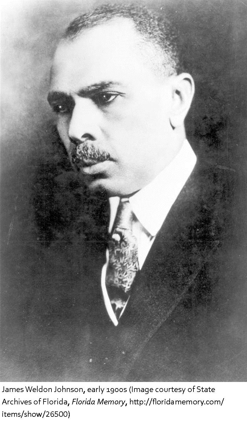 1871 – James Weldon Johnson, African American author, composer, lawyer, teacher and civil rights activist was born in Jacksonville on this date. In his early years in Jacksonville, Johnson was educated first by his mother, but later graduated from the Edwin M. Stanton School where he excelled. He would later teach at Stanton, and became principal of the school in 1906 after graduating from Clark Atlanta University. James and his brother J. Rosamond lived in New York City for a time and were part of the African American cultural movement known as the Harlem Renaissance. It was there that Johnson and his brother wrote and composed the song, “Lift Ev’ry Voice and Sing,” later referred to as the “Negro National Anthem.” Johnson was the first African American admitted to the Florida Bar Exam, and the first from Duval County to ever seek admission. He was active in the NAACP, becoming the first black executive secretary in 1920. Johnson wrote many articles and books often dealing with race relations in America throughout his lifetime including “The Autography of an Ex-Colored Man” in 1912 and “God’s Trombones: Seven Negro Sermons in Verse,” published in 1927, considered to be two of his most influential works. Johnson died in a car accident in 1938 while vacationing in Maine, but his legacy lives on in Florida and beyond.