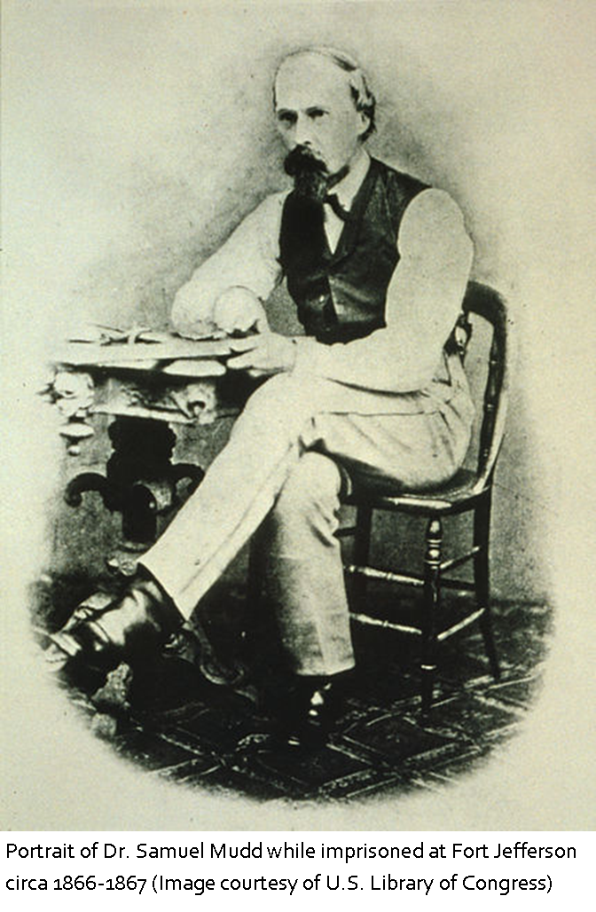 1869 – Dr. Samuel Mudd left Fort Jefferson aboard the US schooner Matchless bound for Key West on this date. Mudd had been convicted of aiding and conspiring with John Wilkes Booth in the 1865 assassination of President Abraham Lincoln. Mudd was sentenced to life imprisonment and was sent to Fort Jefferson in the Dry Tortugas, about 70 miles west of Key West. It was at this desolate post that Mudd would reside until being pardoned by President Johnson on February 8th, 1869. Mudd was officially released from confinement on March 8th. During his time at Fort Jefferson a Yellow Fever epidemic broke out and Mudd agreed to take over for the prison doctor after he had succumbed to the disease. Soldiers stationed at the fort wrote petitions to President Johnson on Mudd’s behalf because of his efforts during the outbreak.