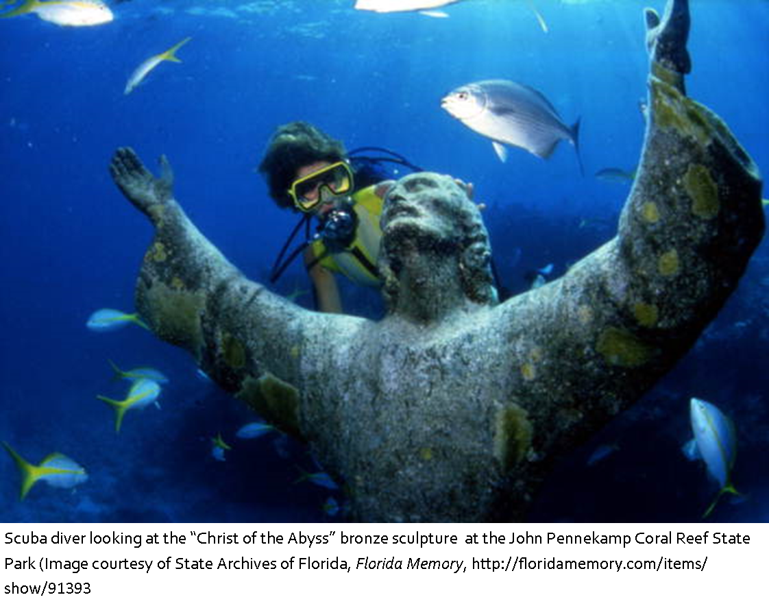 1960- The Key Largo Coral Reef was established on this date, thus establishing the underwater area as officially part of the state park system, and the first underwater park in the United States. The park encompasses approximately 70 nautical square miles of underwater reefs and mangrove areas. A few years after the underwater park was established, land was donated and developed to include a camping area and visitor’s center on land adjacent to the reefs.