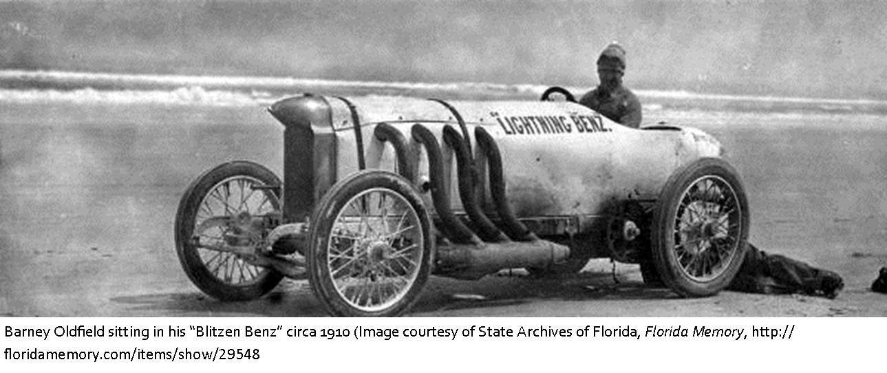 1910 - Barney Oldfield established a new land speed record of 131.7 miles-per-hour at Daytona Beach on this date. Oldfield was driving the “Blitzen Benz,” manufactured in Mannheim Germany in 1909 by the Benz & Cie which boasted an inline four cylinder engine producing 200hp. The Daytona/Ormond Beach area was ideal for these early land speed attempts and is often referred to as the “Birthplace of Speed.”