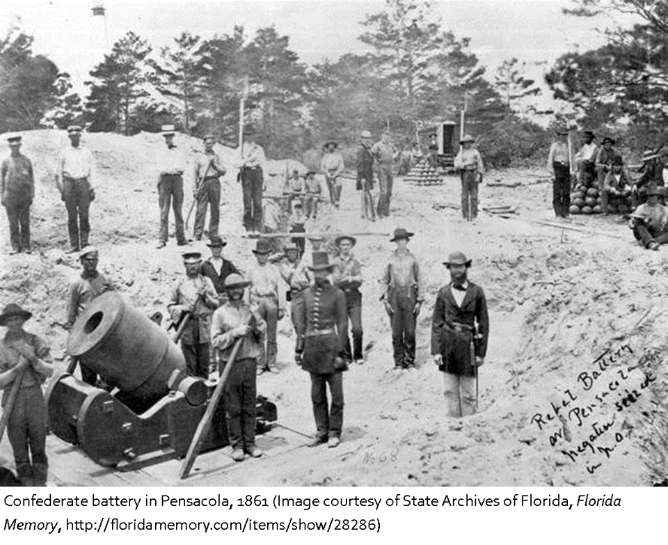 1862 – The City of Pensacola surrendered to Union forces on this date. In January of 1861 Confederate troops from Alabama and Florida took over the Navy Yard and Fort Barrancas, while Union Forces held on to Fort Pickens. Both sides received troop reinforcements over the next few months and in September the first major engagement occurred during the Battle of Santa Rosa Island. Artillery fire was exchanged regularly into 1862 until thousands of Confederate troops were transferred to other campaigns and Pensacola was left to the acting mayor, John Brosnaham who peaceably handed the city over to Union forces. Later in the war many Union troops were also sent to other campaigns.