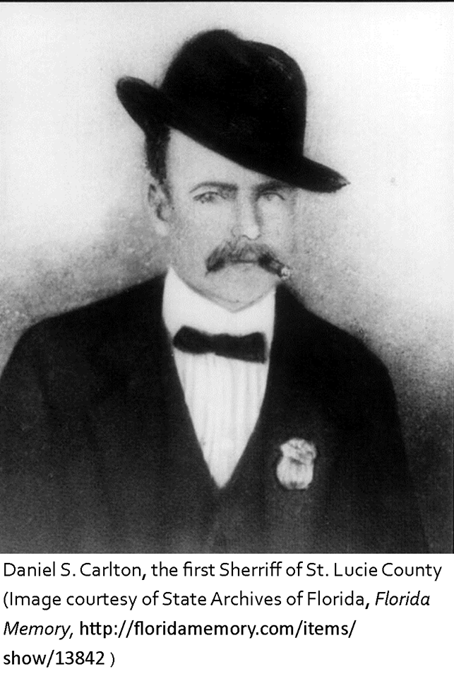1915 – The first sheriff of St. Lucie County, Daniel Stephen Carlton was shot and killed in downtown Fort Pierce on this date. Sheriff Carlton was involved in a pistol duel with a night marshal by the name of James M. Disney. The exact circumstances surrounding the duel remain unknown, with some claiming longstanding personal grievances between the men. Disney was sentenced to five years in prison, serving only two and a half years.