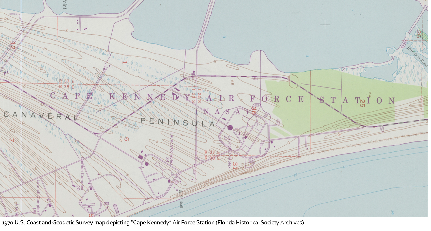 Just six days after the assassination of President John F. Kennedy, President Lyndon B. Johnson announced that the entire Cape Canaveral would be renamed Cape Kennedy. Both Kennedy and Johnson were supporters of manned space flight, specifically flights to the surface of the moon. Although the name change was adopted by the U.S. Board of Geological Surveys and the U.S. Department of the Interior, it was not popular in Florida as Cape Canaveral had been the name since the 16th century. Due to this public pressure, name was officially changed back to Cape Canaveral in October of 1973.