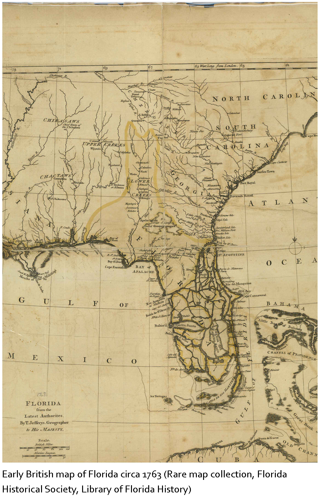 On this date, British Florida was divided into East Florida and West Florida by Royal Proclamation. The dividing line was the Chattahoochee-Apalachicola River. St. Augustine remained the capital of East Florida, while Pensacola became the capital of West Florida.