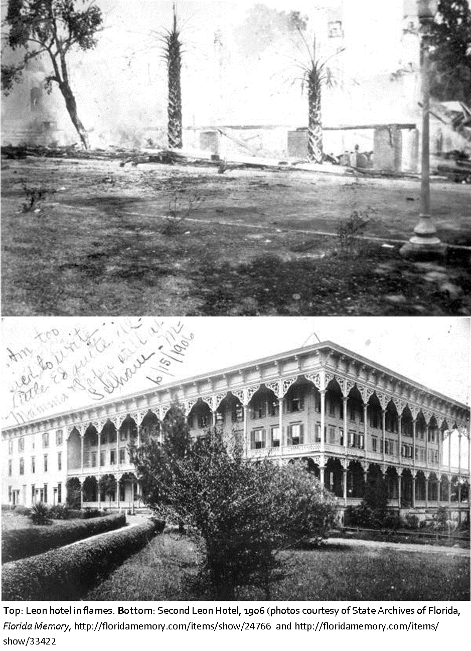 The Leon Hotel in Tallahassee burned down on this date. Originally constructed in 1881 on East Park Avenue, it was a two story Victorian style hotel with large ornate porches wrapping around both floors. The large fire which was not completely extinguished until October 14th reduced the entire structure to ashes. Later in 1935 the post office building was built on the site.