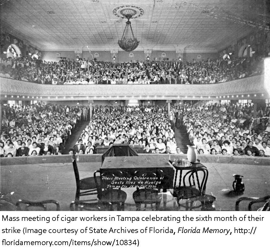 Cigar workers in Tampa, having been on strike for 6 months, called a workers’ meeting and voted in favor of continuing the strike. The Tampa Tribune reported on the meeting and called closed shops “un-American”. When the strike ended 4 months later, it had been the longest and most expensive in the Tampa cigar industry.
