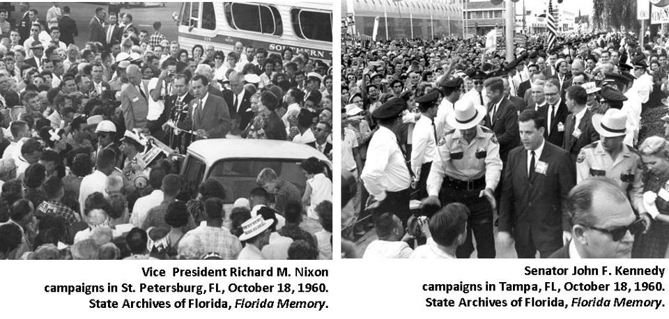 The presidential campaigns came to Florida with Vice President Richard M. Nixon visiting St. Petersburg and Senator John F. Kennedy visiting Tampa. Although Senator Kennedy was the eventual winner, Vice President Nixon carried Florida and its 10 electoral votes. With over 1.5 million Floridians voting, Nixon won the state with a little more than 46,000 votes, or 51.5%.