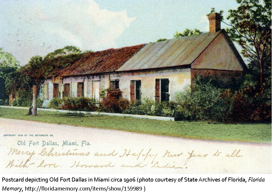 Fort Dallas in Miami was occupied by U.S. troops for the third time on this date. First built in 1836 by the Federal government during the Second Seminole War, the site was occupied sporadically by troops until 1857. Buildings associated with the Fort existed for decades later, some being occupied by some of Miami’s early settlers including Miami’s founder Julia Tuttle. Today, the “old barracks” building as it became known is the only existing building from the fort which was moved to the north side of the Miami River into Lummus Park in the early 20th century.