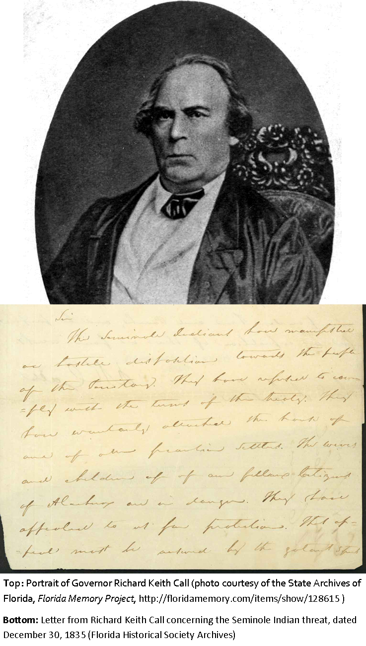 The third and fifth Territorial Governor of Florida, Richard Keith Call, was born in Virginia on this date. Call first came to Florida in 1814 as aide-de-camp to General Andrew Jackson during the Creek Indian Wars and worked with Jackson to establish a territorial government in 1821. Call decided to make Florida his permanent home and opened a law practice there in 1822. In 1836 President Jackson appointed Call Territorial Governor of Florida. During the Second Seminole War (1835-1842) Call led the Florida Militia and was directly involved in many early skirmishes. In the early 1830s, Call began construction on a large plantation home north of Tallahassee known as “The Grove.” The home remained in the Call family including his great-granddaughter Mary Call and her husband, the late Governor Leroy Collins. The home is now owned by the State of Florida and in 2009 a comprehensive restoration project began on the property which will eventually be open for public tours.