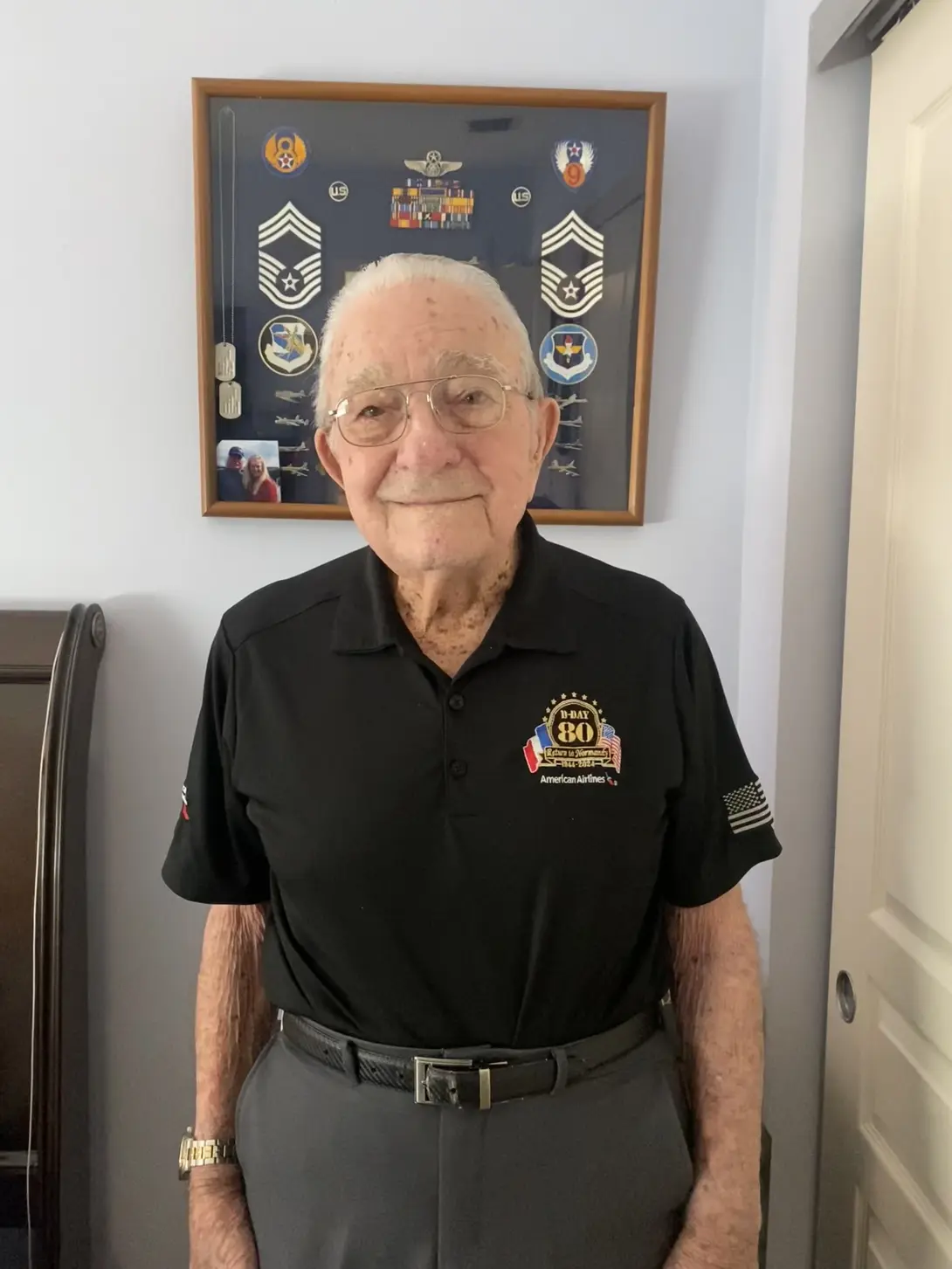 MEL JENNER: During the war in 1944, I had been to France twenty five different times, twenty five different missions. But I never set foot on French soil. We went back last June [2024] to France. I got a chance to walk on French soil and put my foot on it and walked the beaches of Normandy and that's exactly what we did. And I got some sand from the different beaches. I saw Omaha Beach and the five main beaches that we had troops landing at.