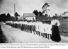 1955 - Mary McLeod Bethune, the founder and first president of Bethune-Cookman College in Daytona Beach, died on this date. Ms. Bethune, who was born to former slave parents on July 10, 1875, began her own school on October 3, 1904, with a capital of only $1.50. Bethune’s career in education began when she received a scholarship to attend Scotia Seminary in North Carolina. A second scholarship provided the means for her to attend the Moody Bible Institute in Chicago, Illinois. After teaching eight years at schools in Augusta, Georgia, and Palatka, Florida, she opened her own school.
