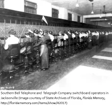 1880 – Florida’s first telephone exchange opened on this date in Jacksonville. Southern Bell Telephone and Telegraph Company opened with 34 subscribers. Popularity for the new device slowly grew and by 1897 the first long distance line from Jacksonville to Georgia was established at a rate of 85 cents for three minutes. Soon Southern Bell bought out most of the small regional lines in Florida and by 1955 they had established over 1 million lines statewide.
