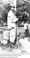 Renowned horticulturist Lue Gim Gong first arrived in DeLand on this date. Best known for his contributions to the citrus-growing industry in Florida, Lue was originally from Canton China. He moved to the United States in 1872 and became a citizen in 1877. Lue began cross-pollinating oranges and developed a cold-resistant grapefruit variety. The Lue Gim Gong variety of orange (now commonly known as the Valencia) is still grown in Florida today. Lue lived in DeLand for 40 years and is buried in the Oakdale Cemetery.
