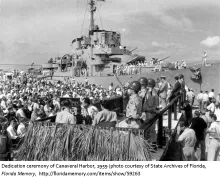 Canaveral Harbor on the east coast of Florida in central Brevard County was dedicated on this date. Canaveral Harbor, now known as Port Canaveral is a cruise, cargo and naval port which has also supported NASA operations since the 1960s including the Mercury, Gemini, Apollo and Space Shuttle programs. The port was entirely manmade between 195 1and 1953 and supported commercial fisheries from the 1950s – 1980s. Today, Port Canaveral is one of the busiest cruise ports in the United States with over 2.8 million passengers annually. Port Canaveral continues to host a U.S.