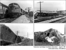 1961 - A Florida East Coast Railway train wrecked in Delray Beach on this date. Derailments and railroad related accidents are not uncommon in Florida, although rail safety has become more advanced in the last few decades, helping to ensure safe passage for trains, pedestrians and motorists along Florida’s many miles of tracks.