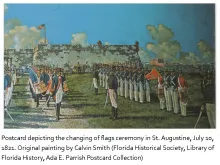 1821 – Florida was officially transferred from Spanish to American control on this date. As part of the Adams – Onís treaty of 1818, both East and West Florida were ceded to the United States. Two flag ceremonies took place, the first of which was in St. Augustine on July 10th, and the second took place in Pensacola on July 17th. The population of the new territory was relatively small, although settlement would increase significantly during the territorial years (1821-1845) as the United States sought to incentivize settlement through the use of land grants.