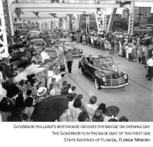 1941 – A celebration was held for the grand opening of the Main Street Bridge in Jacksonville. The steel vertical lift bridge, which crosses the St. Johns River, was built at a cost $1.5 million dollars! Hundreds of people attended the festivities, which included a parade and address from Governor Spessard Holland. Although the bridge was officially renamed in 1957 after Mayor John T. Alsop, Jr., it continues to be known as the Main Street Bridge. If you enjoy learning about Florida history every day, please remember to "share" our posts with your friends!